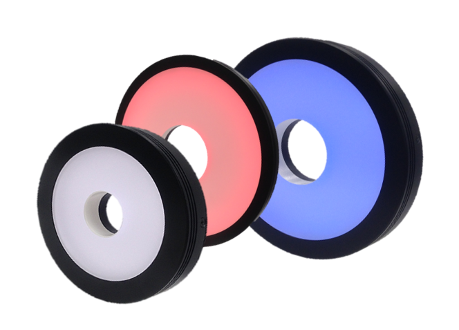 Similar to FLFR, the FLKR is a ring-shaped light with overhead diffused light which eliminates glares and shadows for thoroughly even illumination on shiny surfaces. The FLKR generates highly homogenous and slightly angled illumination towards the center, ideal for inspecting shiny objects and highlighting edges. The small height of this series is also appropriate for space-saving solutions. Segmented light (FLKR-Si100-270) is available for this series.