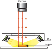 The low-angle illumination of this series is suitable for edge detection and embossing printing, damage, or cosmetic inspection. Providing 360-degree illumination for reflective objects from an angle without producing reflections. Ideal for slightly uneven surfaces and scratches. Optional diffuser plate can be mounted to improve illumination evenness.