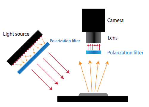 Polarizing filters can be a straight-forward solution for improving attribute extraction when a measurement task is inhibited by reflections. The first polarizing filter positioned on the light polarizes the light beam linearly. This means that the transverse light waves are filtered out down to a minimal amount. A reflection occurs when contact is made with the object - the boundary surface to be exact. Depending on various refraction angles, this reflection then again generates transverse stray light. The stray light (the reflection) generated by the reflection can be absorbed by the second filter. Only a small part of the previously linearly polarized light remains.