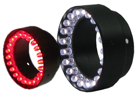 The FLDR-B with extremely bright light output are mounted with tilt depending on the illumination are and ranges between 19-45 horizontally. This series enables workplace flexibility and 360 degree shadow-free illumination. It is best suited for producing fresh, vivid images with wide area of illumination thanks to high uniformity from its outer circumference. Reflective material can be detected with optionally installed diffuser or polarizer as requested. High Power versions and UV versions are also available for related applications.